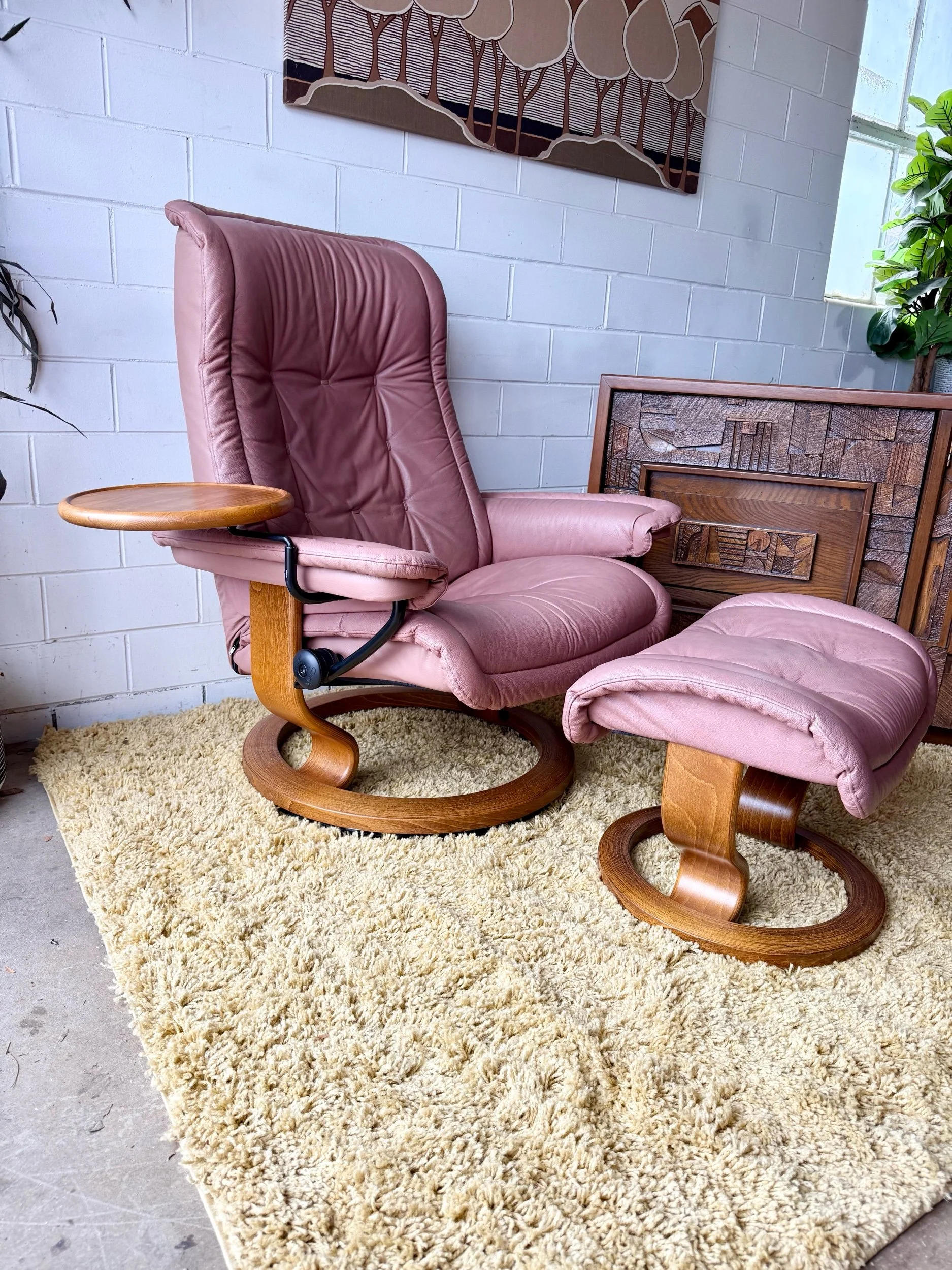 Large Ekornes Stressless Royal Recliner Chair + Ottoman in Mauve